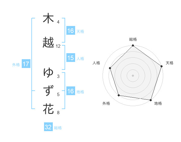 木越 ゆず花さんの天格は16画の5点!
