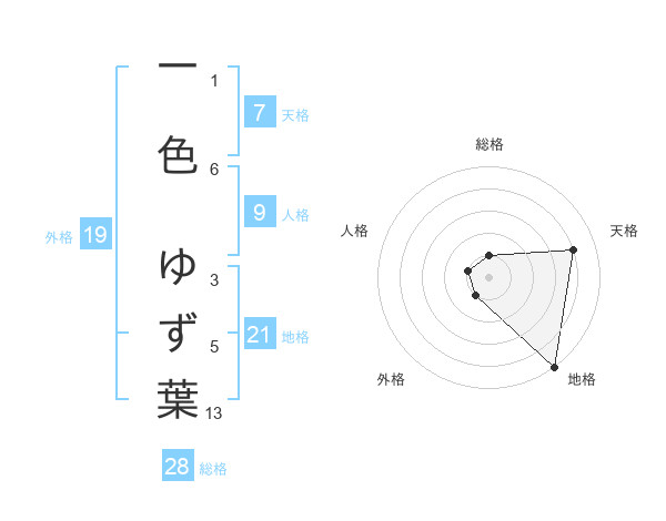 一色 ゆず葉さんの外格は19画の1点!