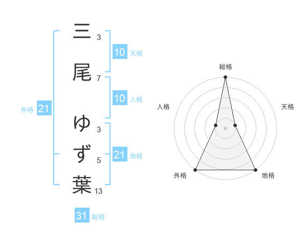 三尾 ゆず葉さんの外格は21画の5点!