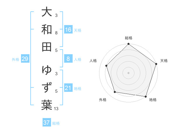 大和田 ゆず葉さんを姓名の画数から五運を鑑定