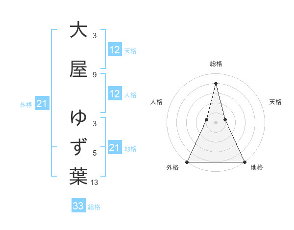 大屋 ゆず葉さんを姓名の画数から五運を鑑定