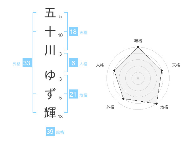 五十川 ゆず輝さんを姓名の画数から五運を鑑定
