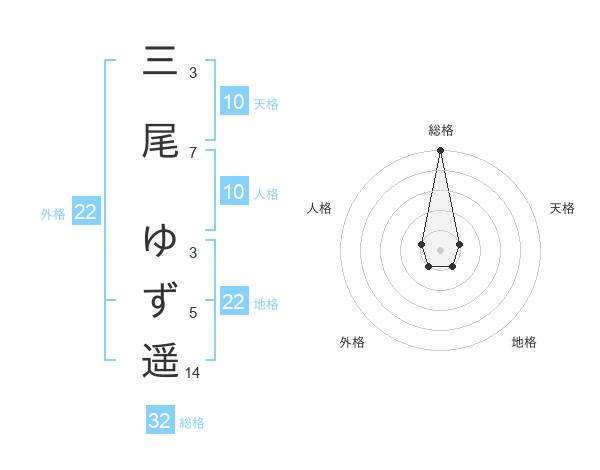 三尾 ゆず遥さんを姓名の画数から五運を鑑定