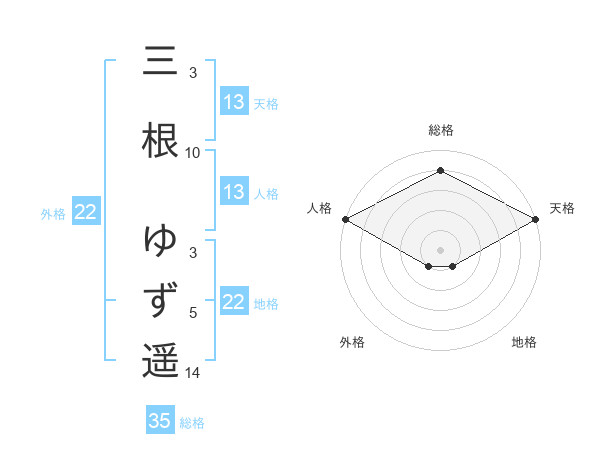 三根 ゆず遥さんを姓名の画数から五運を鑑定