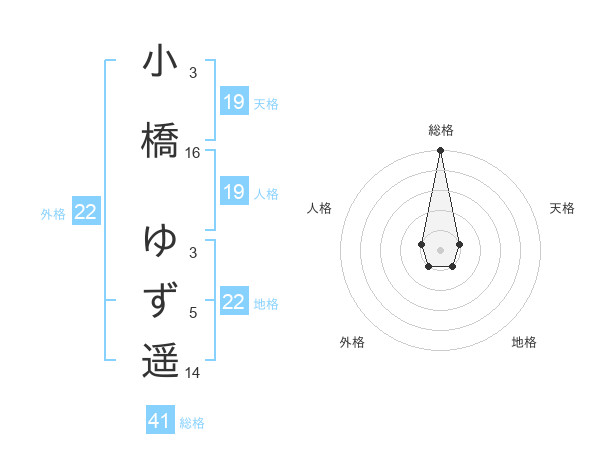 小橋 ゆず遥さんの総格は41画の5点!