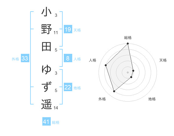 小野田 ゆず遥さんを姓名の画数から五運を鑑定