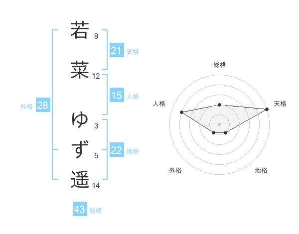 若菜 ゆず遥さんを姓名の画数から五運を鑑定