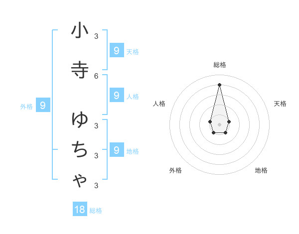 小寺 ゆちゃさんの天格は9画の1点!