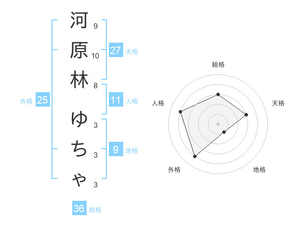 河原林 ゆちゃさんを姓名の画数から五運を鑑定