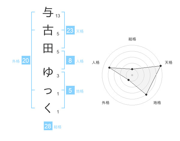 与古田 ゆっくさんの天格は23画の5点!