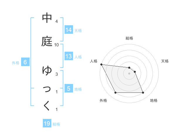 中庭 ゆっくさんを姓名の画数から五運を鑑定