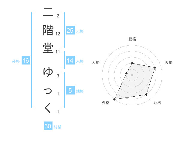 二階堂 ゆっくさんを姓名の画数から五運を鑑定