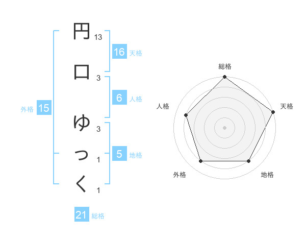 円口 ゆっくさんを姓名の画数から五運を鑑定