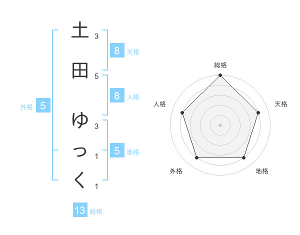 土田 ゆっくさんを姓名の画数から五運を鑑定