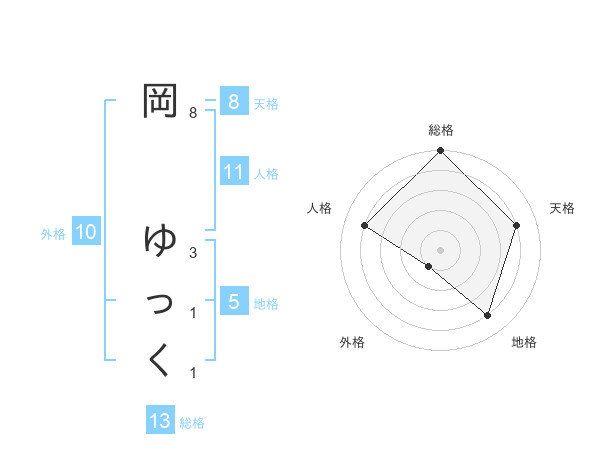 岡 ゆっくさんを姓名の画数から五運を鑑定
