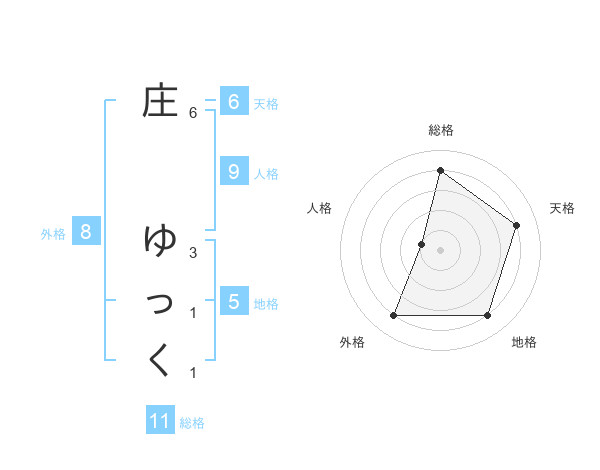 庄 ゆっくさんの総格は11画の4点!
