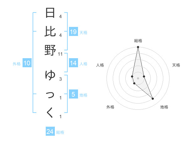 日比野 ゆっくさんを姓名の画数から五運を鑑定