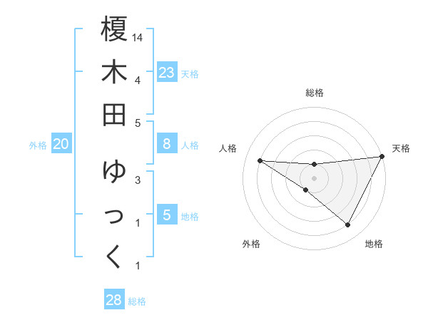 榎木田 ゆっくさんを姓名の画数から五運を鑑定