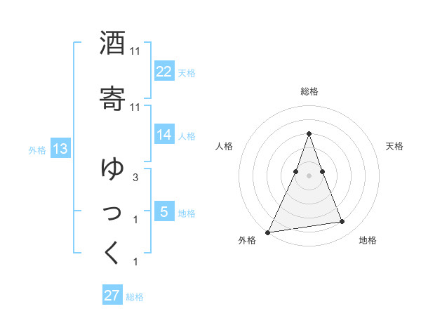 酒寄 ゆっくさんを姓名の画数から五運を鑑定