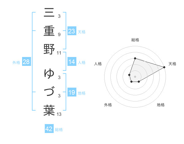 三重野 ゆづ葉さんを姓名の画数から五運を鑑定