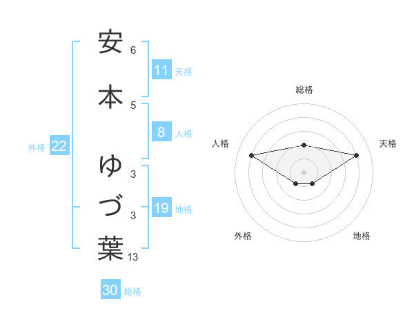 安本 ゆづ葉さんの外格は22画の1点!