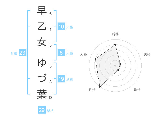 早乙女 ゆづ葉さんの天格は10画の1点!