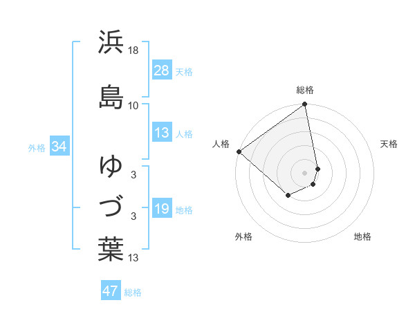 浜島 ゆづ葉さんを姓名の画数から五運を鑑定