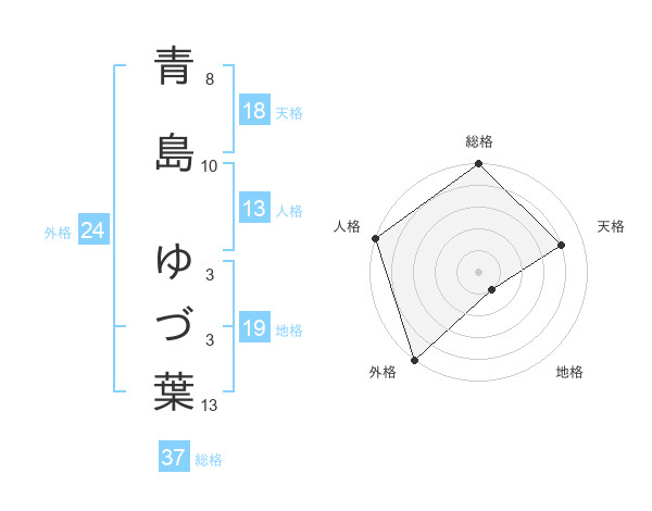 青島 ゆづ葉さんを姓名の画数から五運を鑑定