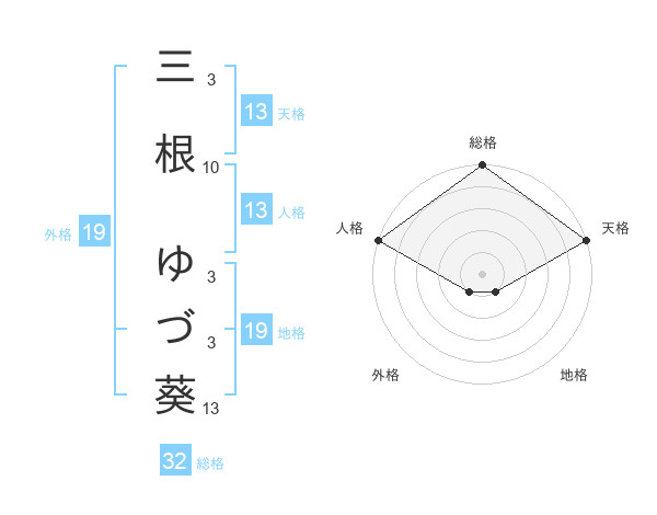 三根 ゆづ葵さんを姓名の画数から五運を鑑定