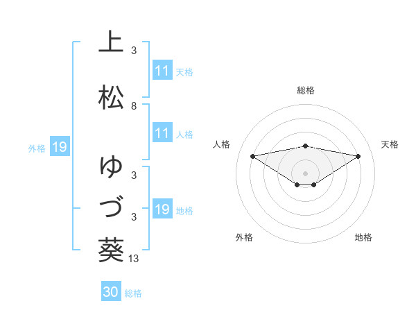 上松 ゆづ葵さんの天格は11画の4点!