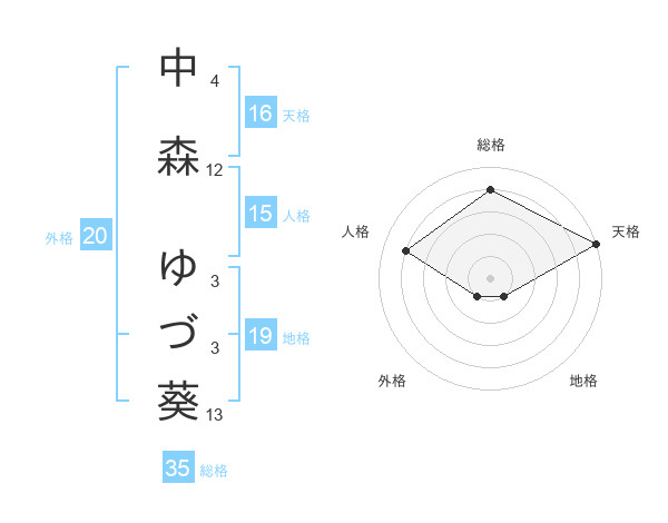 中森 ゆづ葵さんを姓名の画数から五運を鑑定