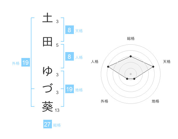 土田 ゆづ葵さんの総格は27画の3点!