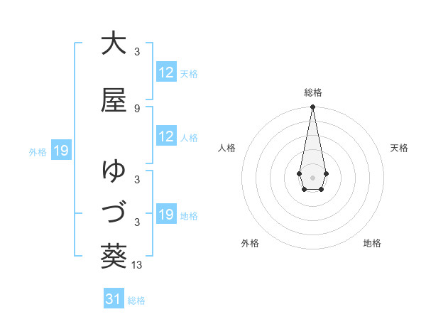 大屋 ゆづ葵さんを姓名の画数から五運を鑑定