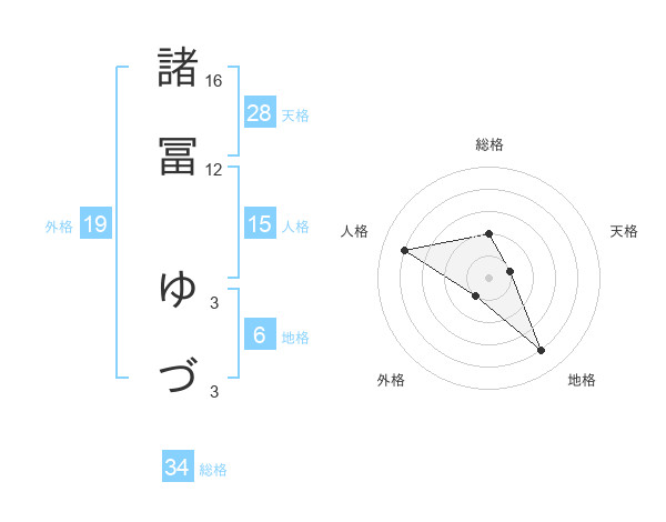 諸冨 ゆづさんの総格は34画の2点!