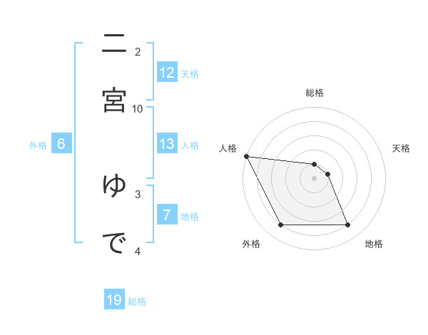 二宮 ゆでさんを姓名の画数から五運を鑑定