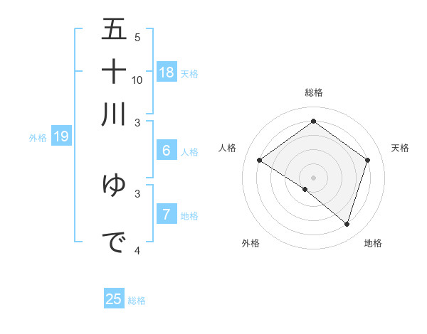 五十川 ゆでさんを姓名の画数から五運を鑑定