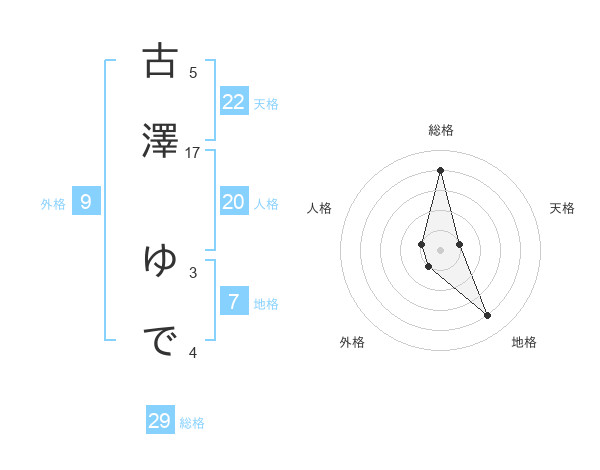古澤 ゆでさんの総格は29画の4点!
