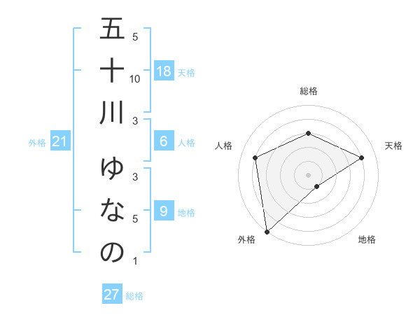 五十川 ゆなのさんを姓名の画数から五運を鑑定