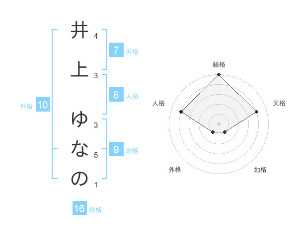 井上 ゆなのさんの外格は10画の1点!