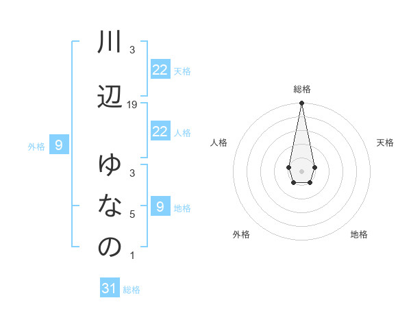 川辺 ゆなのさんの総格は31画の5点!