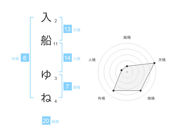 入船 ゆねさんを姓名の画数から五運を鑑定