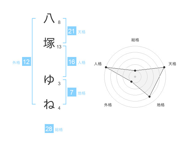 八塚 ゆねさんを姓名の画数から五運を鑑定