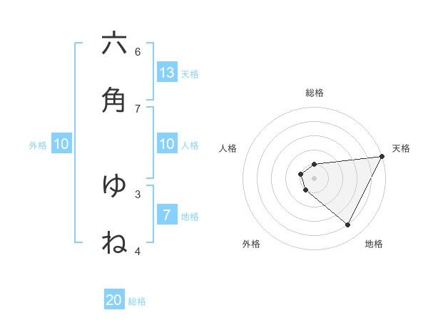 六角 ゆねさんを姓名の画数から五運を鑑定
