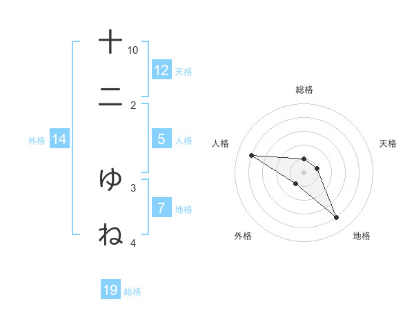 十二 ゆねさんの総格は19画の1点!