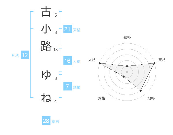 古小路 ゆねさんを姓名の画数から五運を鑑定