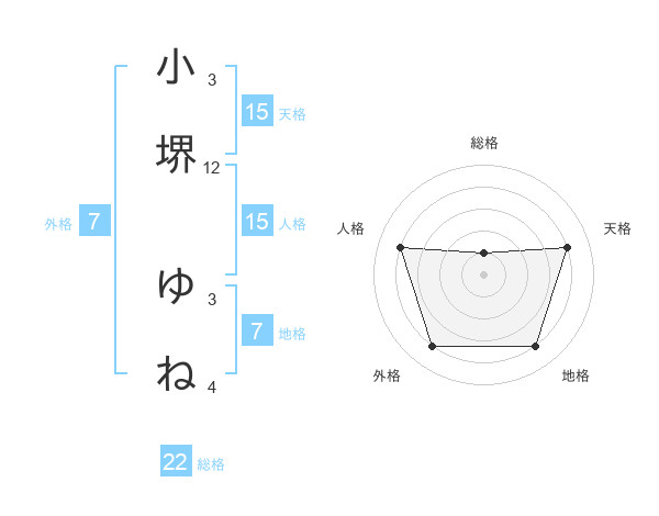 小堺 ゆねさんの天格は15画の4点!