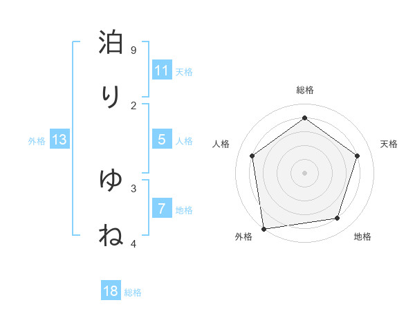 泊り ゆねさんの外格は13画の5点!
