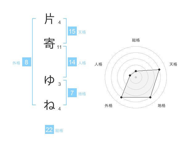 片寄 ゆねさんの天格は15画の4点!