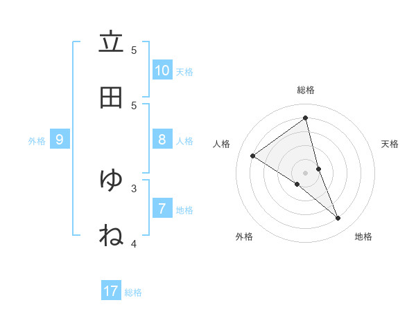 立田 ゆねさんを姓名の画数から五運を鑑定