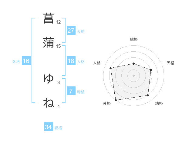 菖蒲 ゆねさんの天格は27画の3点!